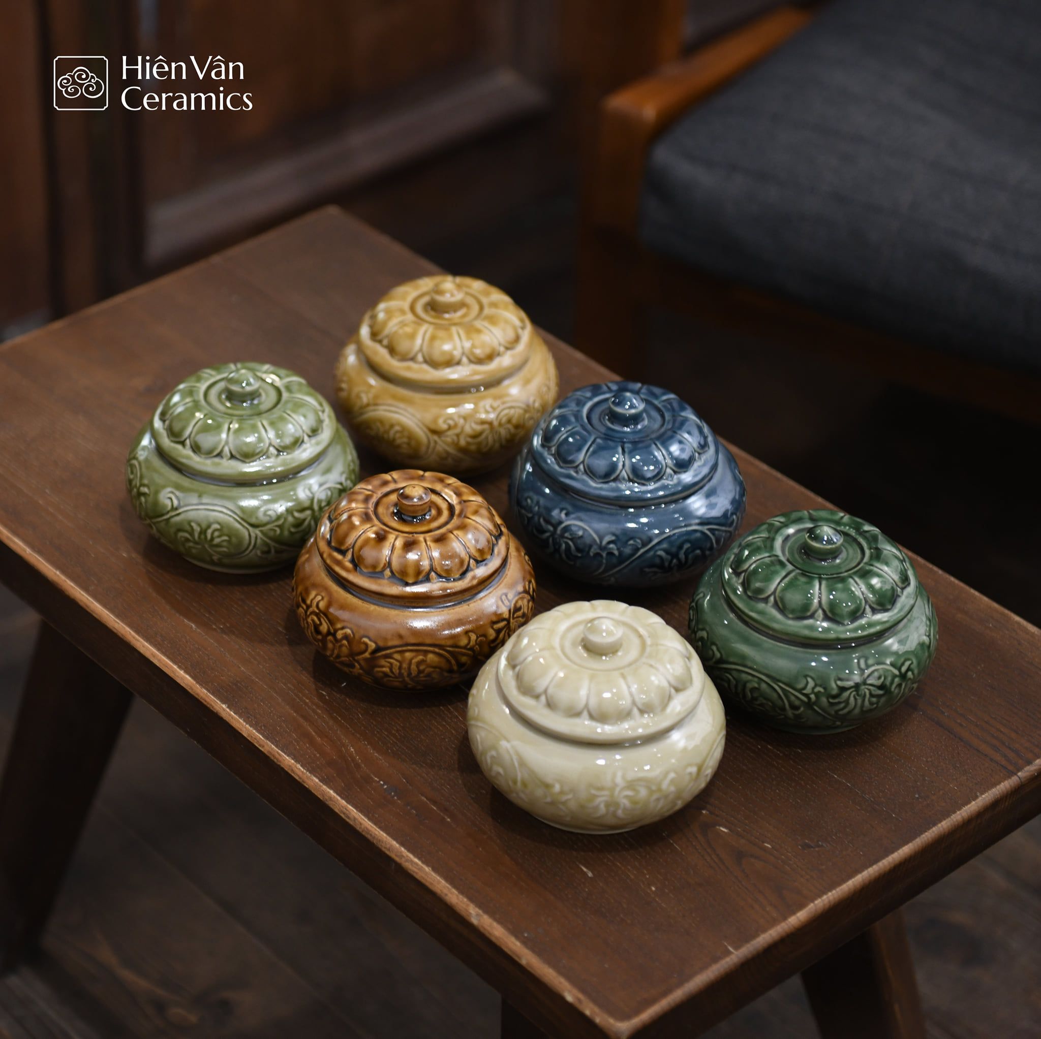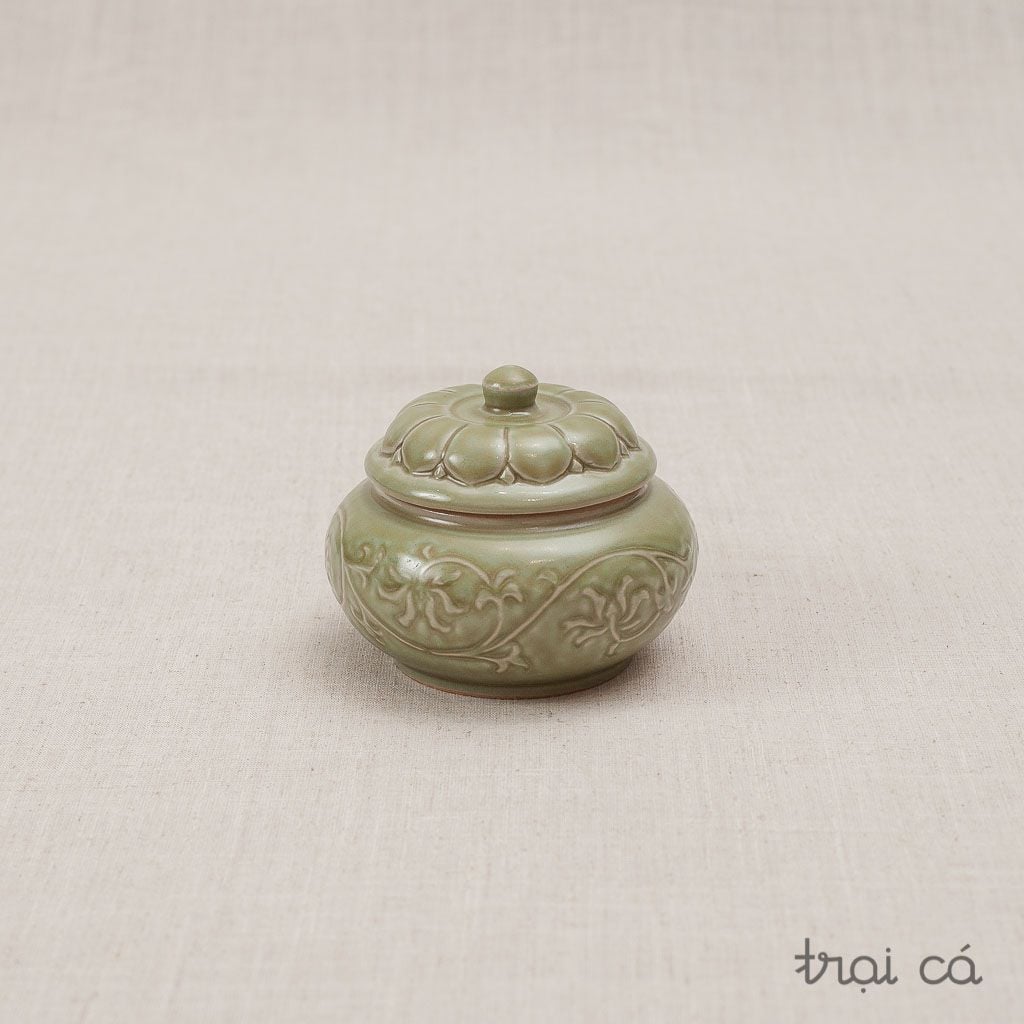 Hũ mứt hoa dây nổi - gốm Hiên Vân
